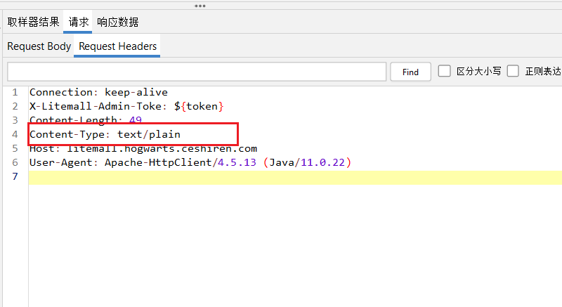 jmeter中若不对其进行设置其默认格式为Content-Type: text/plain,数据格式错误